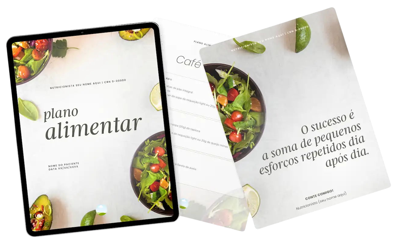 Templates de Plano Alimentar: modelos com design visualmente atrativo para agregar mais valor à sua prescrição nutricional.
